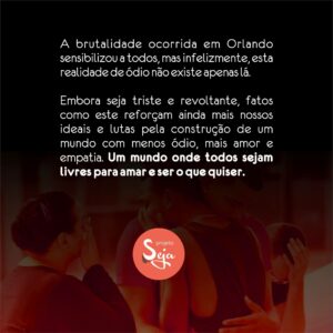 O projeto Seja teve por objetivo prestar apoio a pessoas que estão em processo de auto aceitação perante sua condição sexual. Em parceria com o Coletivo Voe, o Projeto buscou desconstruir visões ofensivas relacionadas ao universo LGBT, bem como trazer debates, questionamentos e reflexões acerca do tema.